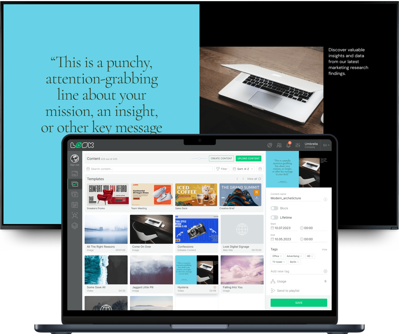 We tried many different solutions for our platform. After many trials and errors, we found Look Digital Signage to be an amazing tool for our purposes.